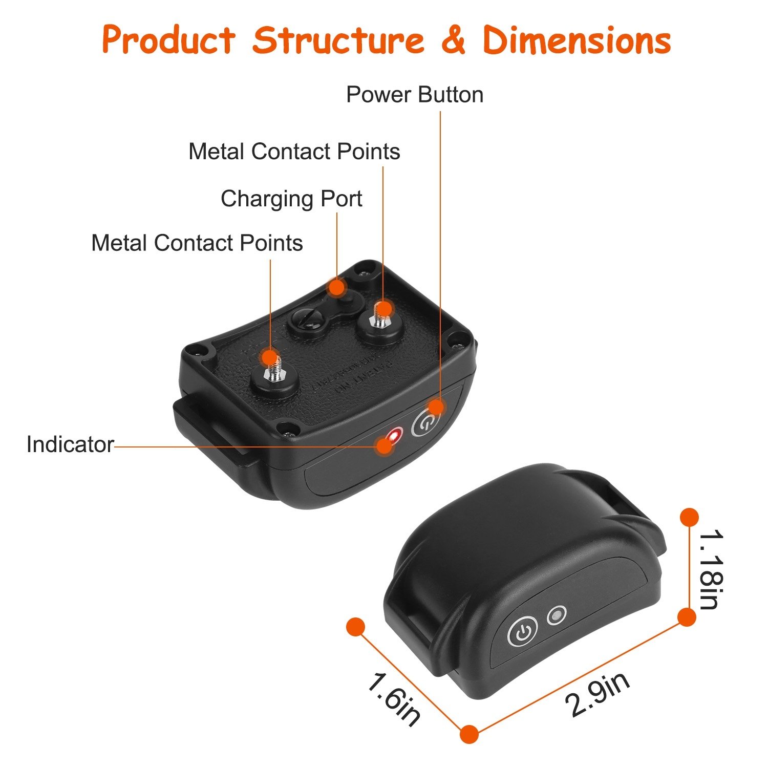 *High-Sensitive Signal Receiver*:Built in high-sensitive chip,our dog training collar receiver can receive the remote controlling signals up to 1.2 acres/53189Square FT area.(Can Be Adjusted On The Transmitter)