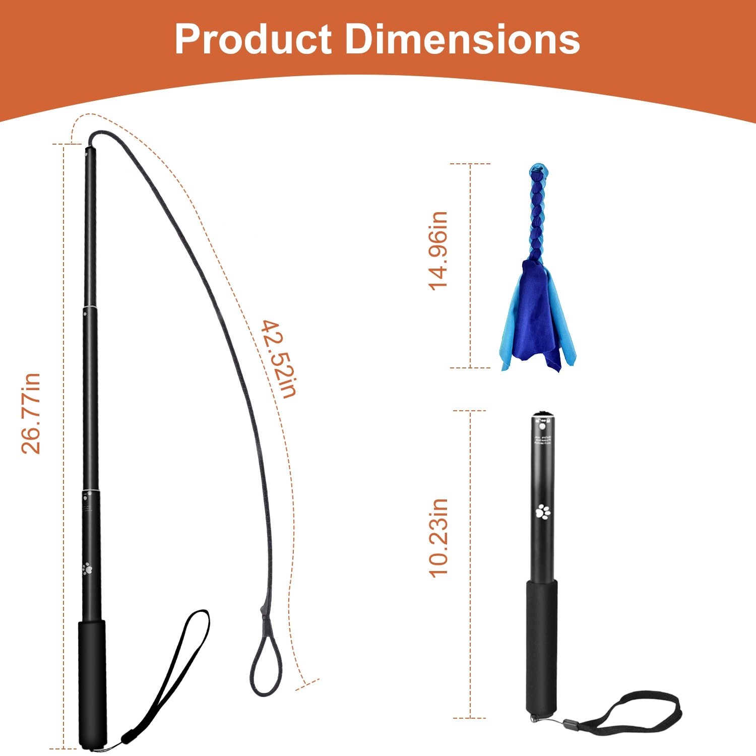 *2 Replaceable Interactive Toy*:Package includes 2 replaceable tail toys made of soft thickened short plush,allow you to use for combining with the pole as chasing training tool or tug-of-war interactive toy without pole. Your lovely dog will love this multifunctional flirt wand!