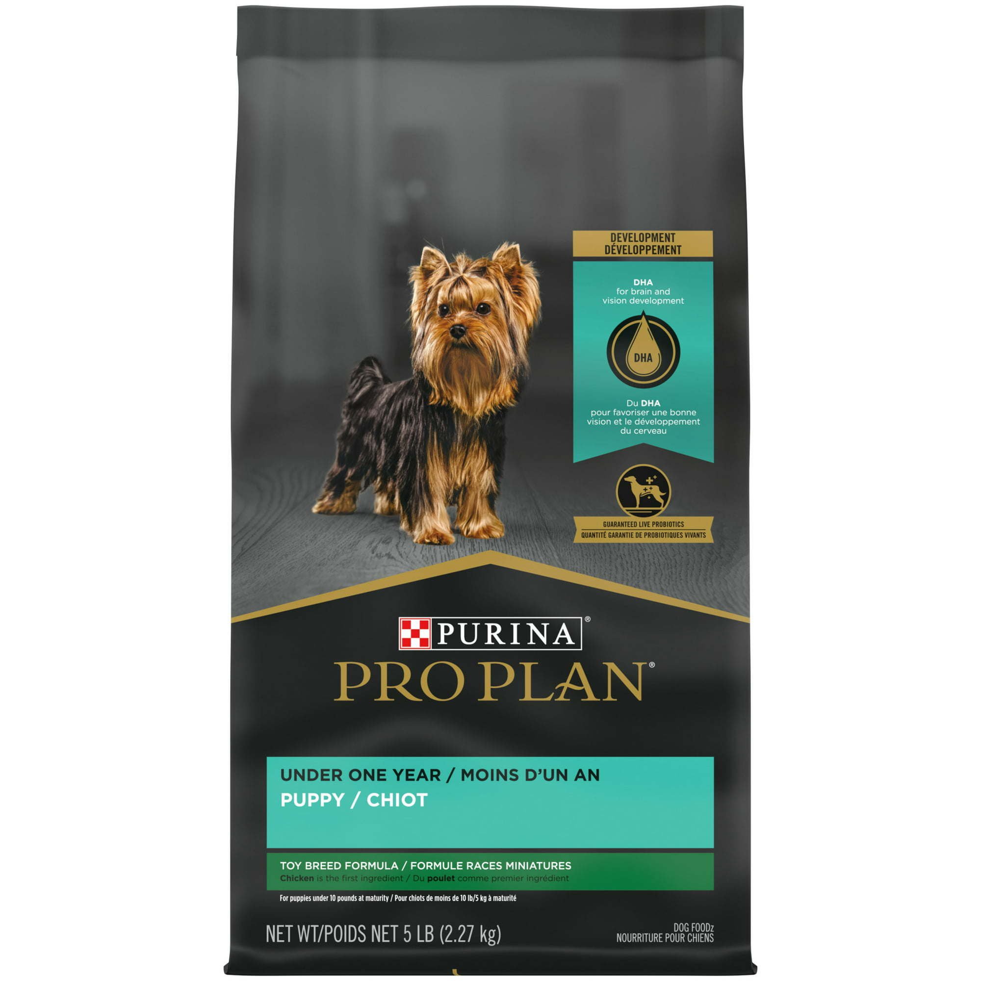 Purina Pro Plan Chicken and Rice for Puppies, Take care of the nutritional needs of your toy breed puppy with Purina Pro Plan Brand Dog Food Puppy Toy Breed Chicken Rice Formula dry puppy food. Formulated for puppies weighing under 10 pounds at maturity, this little puppy food recipe helps to support his overall health and wellness through this important early life stage. High-quality protein, including real chicken as the first ingredient, provides some of the essential nutritional building blocks within your dog's body. Plus, bite-sized pieces of crunchy dog kibble help to make chewing easier.